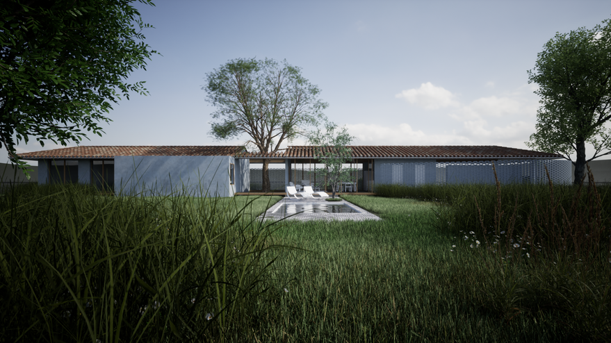 Estudo para implantação de residência rural com o propósito de resgatar soluções técnicas e de conforto que se adaptem ao seu contexto. Desde o telhado cerâmico em quatro águas, a espessura das alvenarias, permeabilidade da ventilação natural e a preservação da vegetação pré-existente.